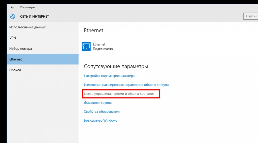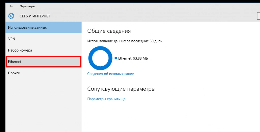 Нажмите на вкладку «Ethernet» в левой части экрана.