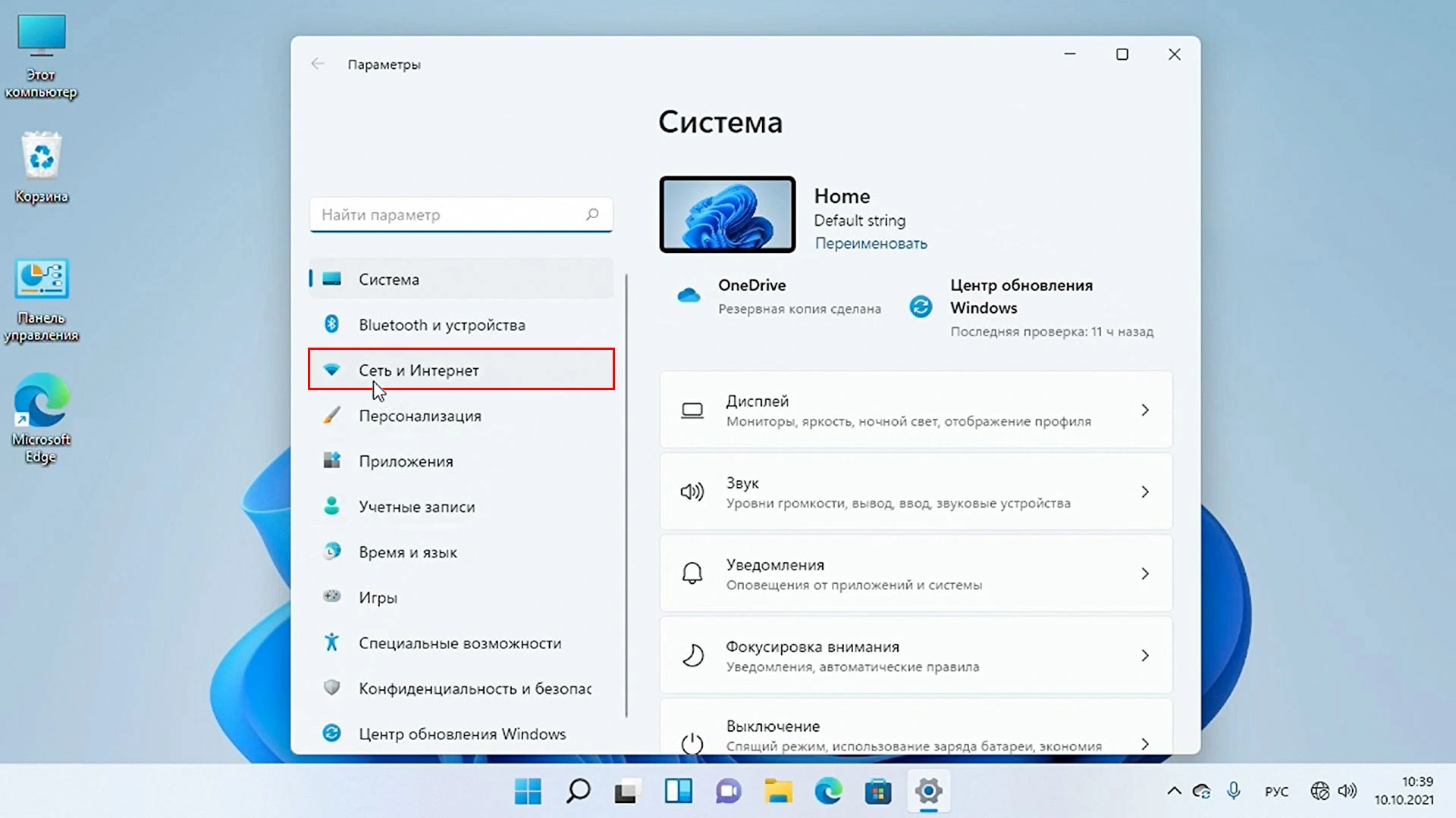 В параметрах найдите вкладку "Сеть и интернет" и нажмите её.