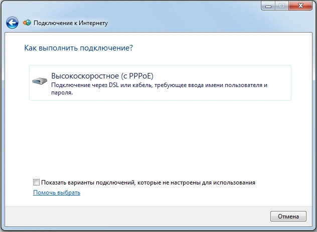 Настройка PPPoE соединения в Windows 7
