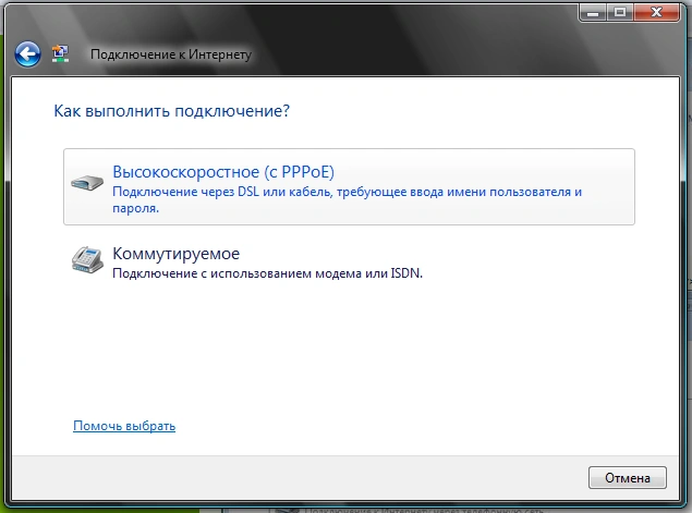 Далее выбираем «Высокоскоростное (c PPPoE)» и нажимаем «Далее».